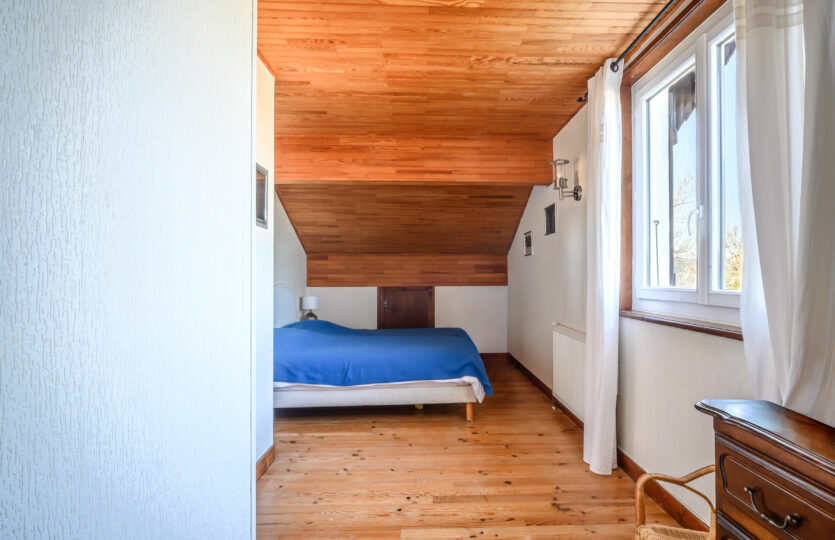 Un agréable petit salon crée un espace de vie supplémentaire, parfait pour un coin détente ou salle de jeux. Ce niveau comprend également deux chambres ainsi qu’une salle d’eau.