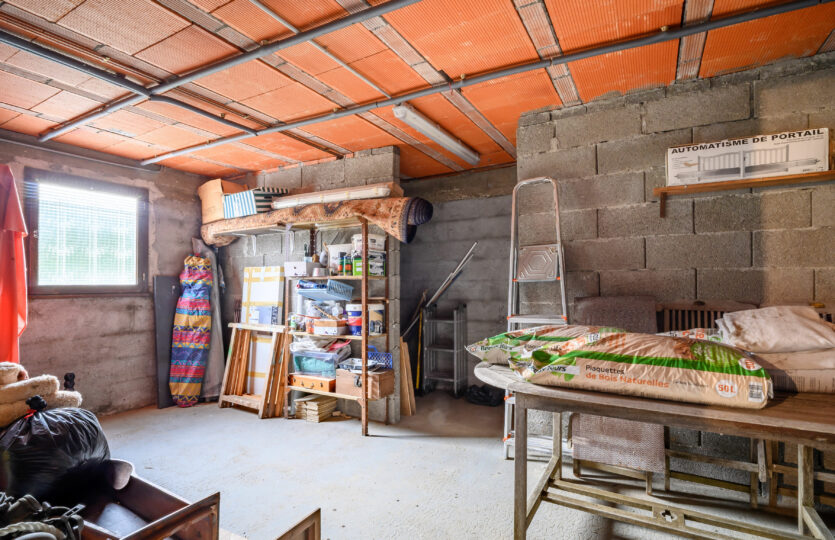 L’ensemble du rez-de-chaussée est dédié aux dépendances et aux garages. Cet espace fonctionnel bénéficie d’un accès direct au vaste terrain de la propriété, particulièrement bien entretenu, idéal pour profiter pleinement des extérieurs.