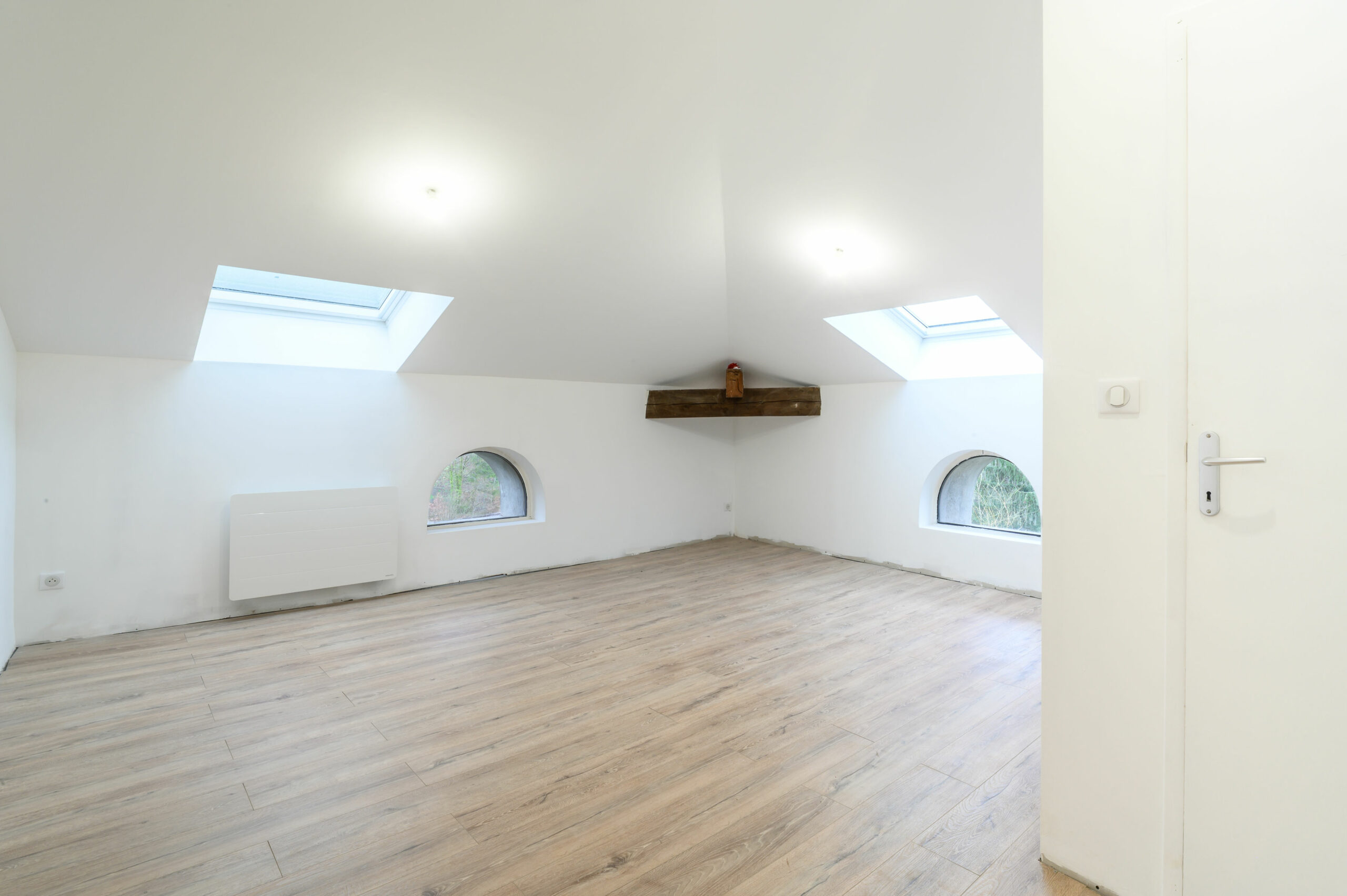 Les travaux de rénovation à terminer, vous permette de profiter de 3 grands plateaux de 55 m2 (cuisine à poser, peintures et sols à faire). Les fenêtres et planchers ont été remplacés et le chauffage électrique ainsi que le cumulus et toute l’électricité sont neufs.
