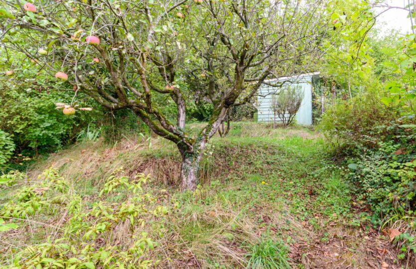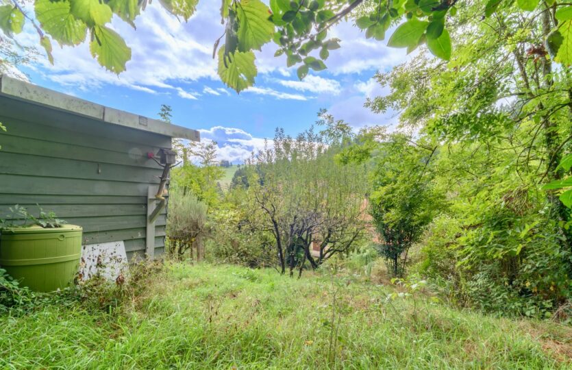 Un jardin non attenant à la propriété qui se situe de l’autre côté de la route, le jardin se compose de trois terrasses dont une qui comporte une cabane/abri de jardin et un puits.